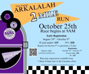 October 25th- Arkalalah 2-mile Run | race time 9am